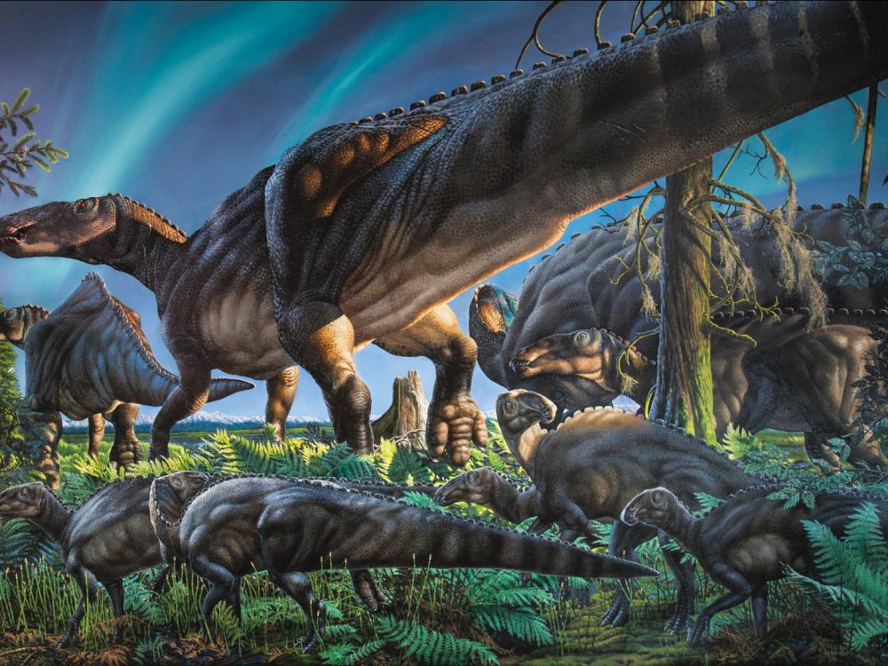 Représentation artistique d’hadrosaures. Source.