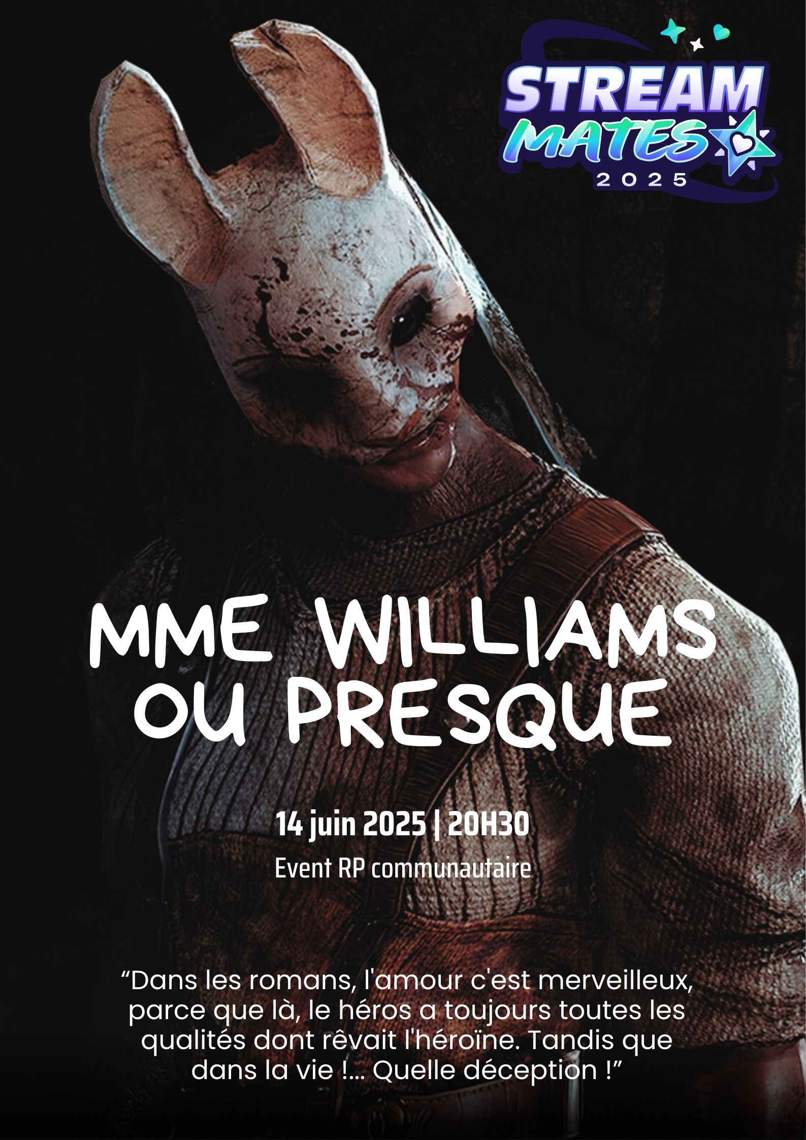 Déçue, trahie et furieuse, elle entre dans une rage noire et se jette sur le groupe avec un plan bien précis : les éliminer jusqu’au dernier en terminant par Monsieur Williams l’infidèle !